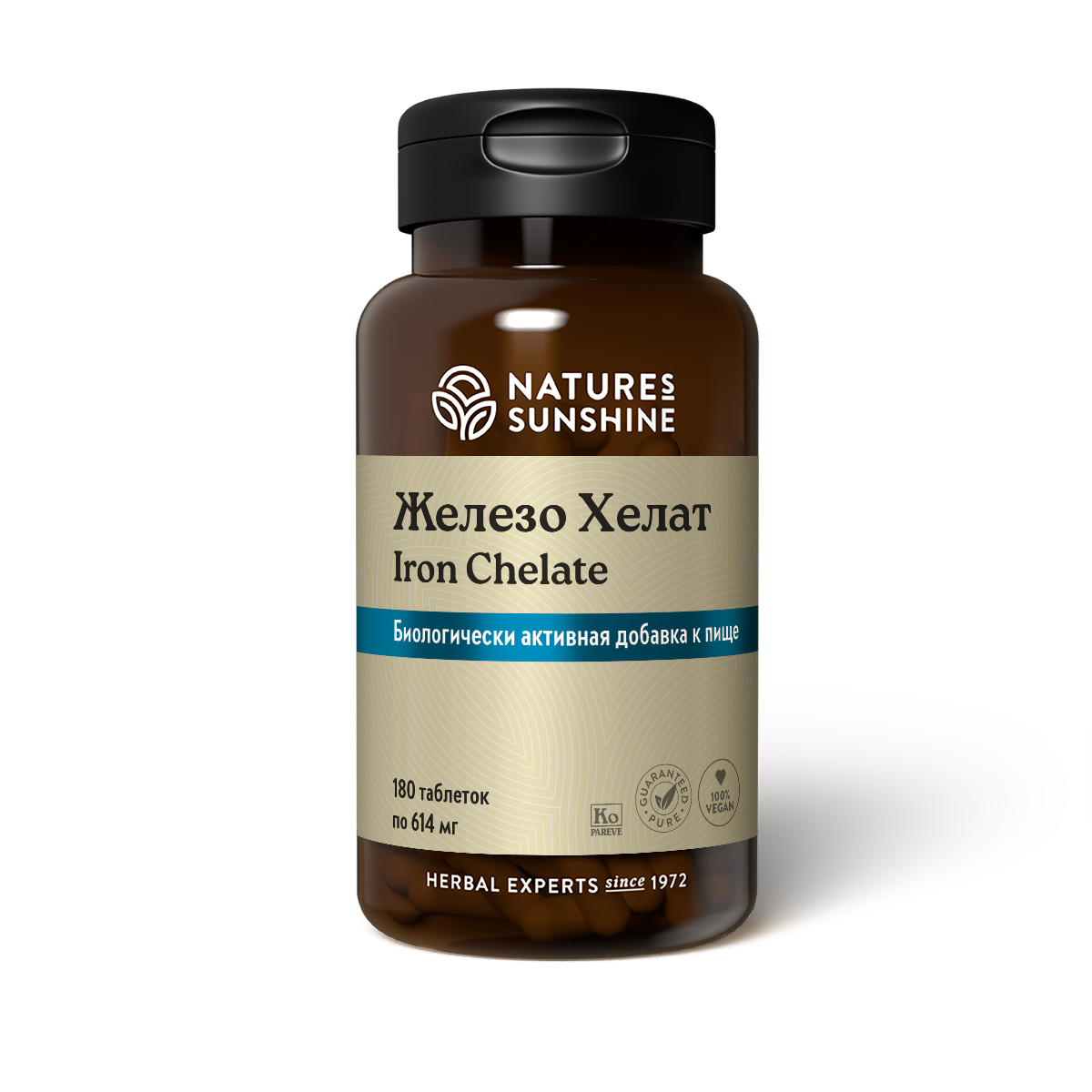 Железо играет важную роль в работе нашего организма. Его дефицит встречается достаточно часто и у детей, и у взрослых, что может быть связано не только с его недостатком в составе пищевого рациона, но и с низким всасыванием в желудочно-кишечном тракте, а также большими потерями железа, которые связаны с кровотечением и хроническими кровопотерями. Дефицит железа может проявляться снижением иммунитета, повышенной утомляемостью, вызывать атрофический гастрит, гингвинит, сухость слизистой оболочки рта и языка и другими клиническими симптомами. Преодолеть железодефицитное состояние поможет Железо Хелат. Увеличивает выработку энергии, поддерживает активность иммунной системы, переносит кислород. Восстанавливает уровень железа в крови при анемии, способствует накоплению кислорода в мышцах.