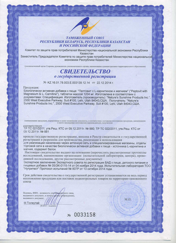 L-Карнитин – играет важную роль в энергетическом и жировом обмене, улучшает энергетику в мышечной ткани, сердце, ускоряет окисление длинноцепочечных жирных кислот, что способствует снижению содержания жира в организме.
